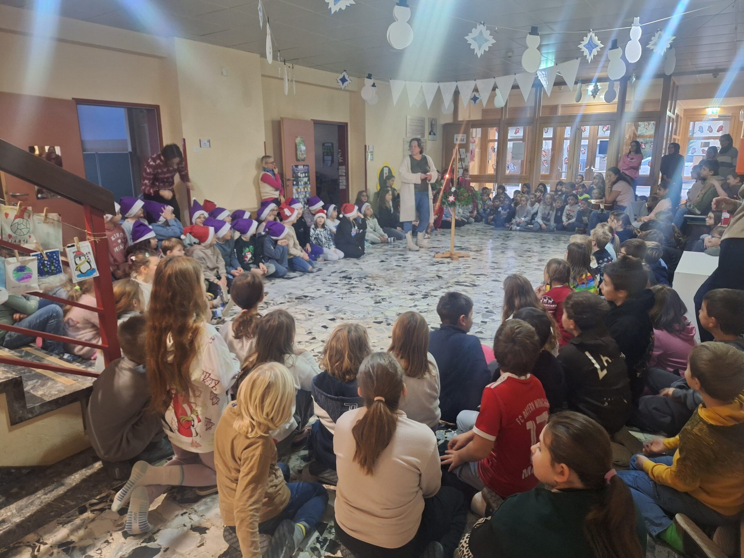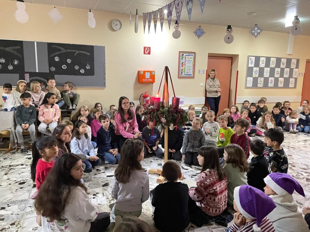 Am Montag, 1. Dezember 2025, trafen sich alle Klassen in der Aula um gemeinsam eine kleine, beschauliche Adventfeier zu gestalten und die 1. Kerze am Adventkranz anzuzünden. Diese Feier wurde von den Klassen 1a, 2c und 3b mit ihren vorbereiteten Beiträgen untermalt. Es wurde gesungen, musiziert und mit Rhythmus gearbeitet. Die Adventzeit wurde erfolgreich in unseren Schulalltag aufgenommen und alle hatten Freude daran.
