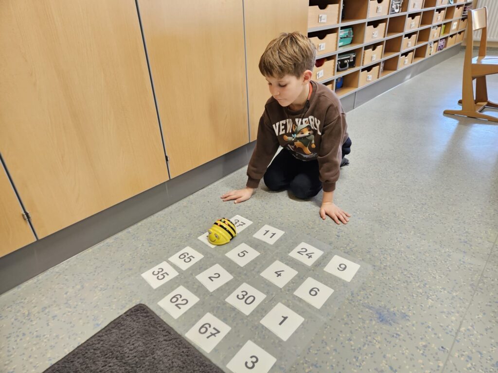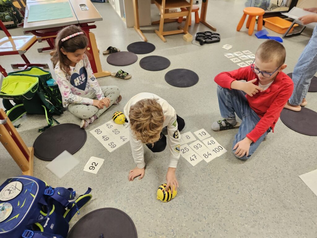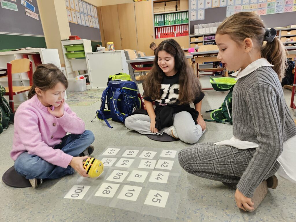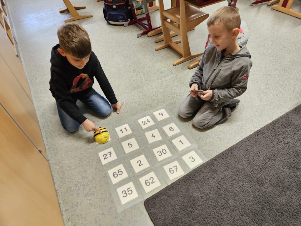 Da wir gerade den Zahlenraum bis 100 entdecken, haben uns die kleinen Bee Bots dabei tatkräftig unterstützt. Die Kinder programmierten die bunten Bienen so, dass sie auf die richtige Zahl fahren – das erforderte genaues Überlegen und gute Teamarbeit! Außerdem haben wir verschiedene Mathematikspiele ausprobiert und mit dem iPad geforscht. So konnten wir unser Wissen festigen und den Umgang mit digitalen Lernhilfen üben.