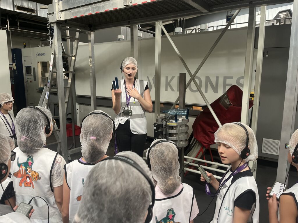 Gleich in der ersten Schulwoche nahm die 4a an einer Werksführung bei Vöslauer Mineralwasser teil. Wir erhielten interessante Einblicke betreffend Hygiene, Qualitätssicherung und Nachhaltigkeit ist. Die Mitarbeiterin erklärte uns, wie jedes Fläschchen gemäß strengsten Standards kontrolliert und wie sorgfältig das Wasser gefördert und verarbeitet wird.