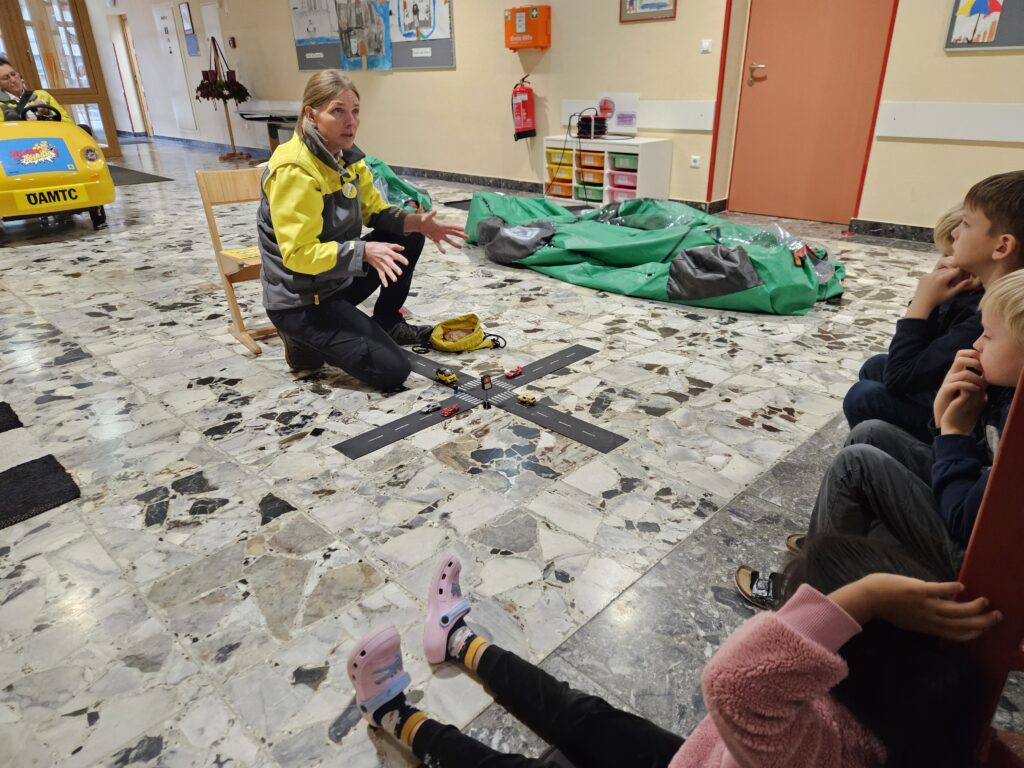 Der ÖAMTC war mit seinem Verkehrssicherheitsprogramm Hallo Auto bei uns zu Gast. Die Kinder lernten dabei auf anschauliche Weise, wie wichtig Aufmerksamkeit im Straßenverkehr ist und wie lange ein Auto tatsächlich zum Anhalten braucht. Dieses Erlebnis machte Verkehrserziehung besonders eindrucksvoll und nachhaltig.