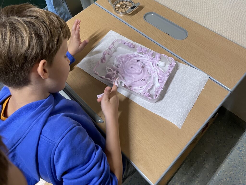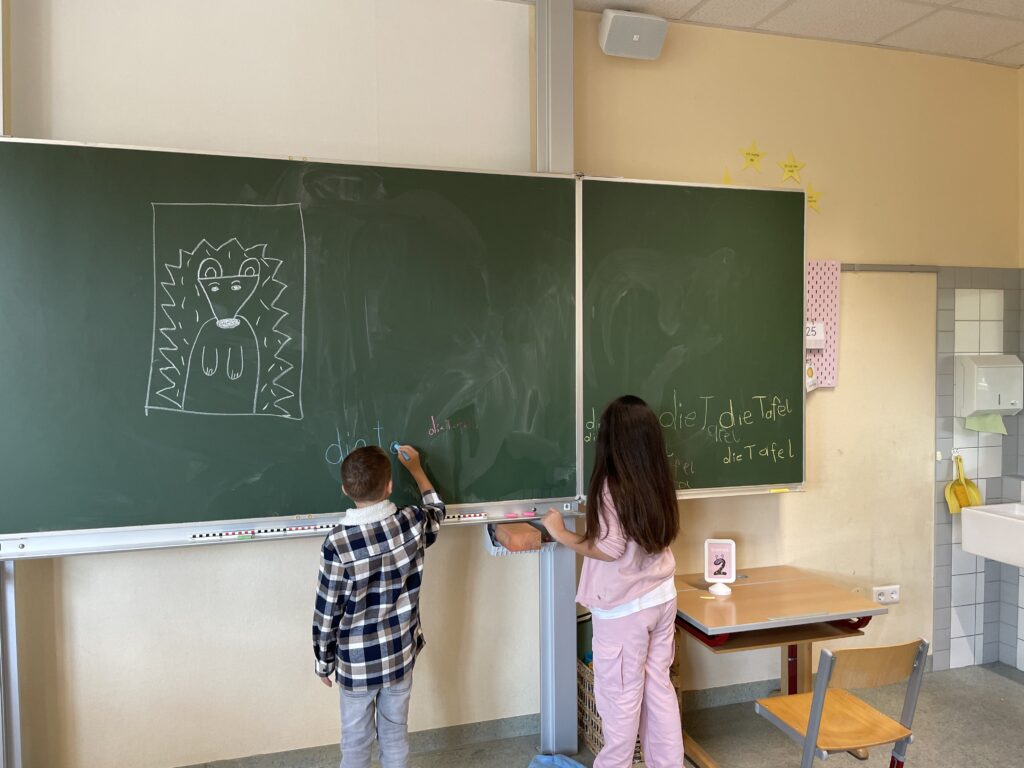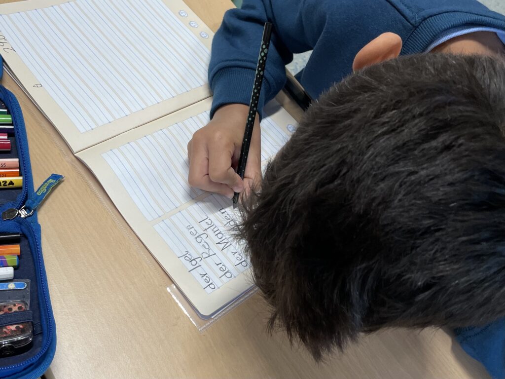 Jeden Montag freuen wir uns ganz besonders, denn dann üben wir fleißig unsere Lernwörter der Woche. An den verschiedenen Stationen macht das Üben richtig Spaß. Wir bauen, legen, kneten, stempeln oder bewegen uns – so wird das Lernen nie langweilig, und jeder von uns arbeitet in seinem eigenen Tempo ganz konzentriert.