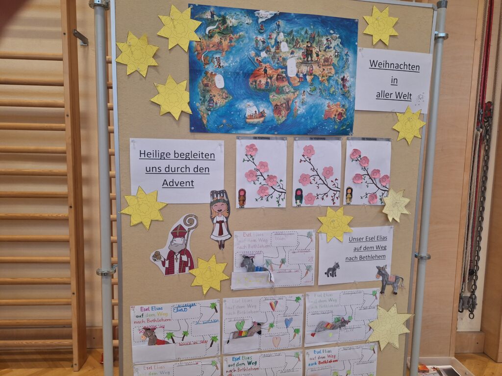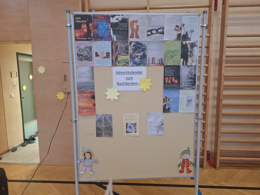In der letzten Schulwoche vor den Weihnachtsferien fand unter Mitwirken von Kaplan Thomas unsere religiöse Adventfeier im Turnsaal statt. Unsere Religionslehrerinnen Alexandra Probst (r.k. Religion) und Jutta Los (evang. Religion) haben gemeinsam mit den Schülern eine sehr schöne und stimmungsvolle religiöse Feier gestaltet.