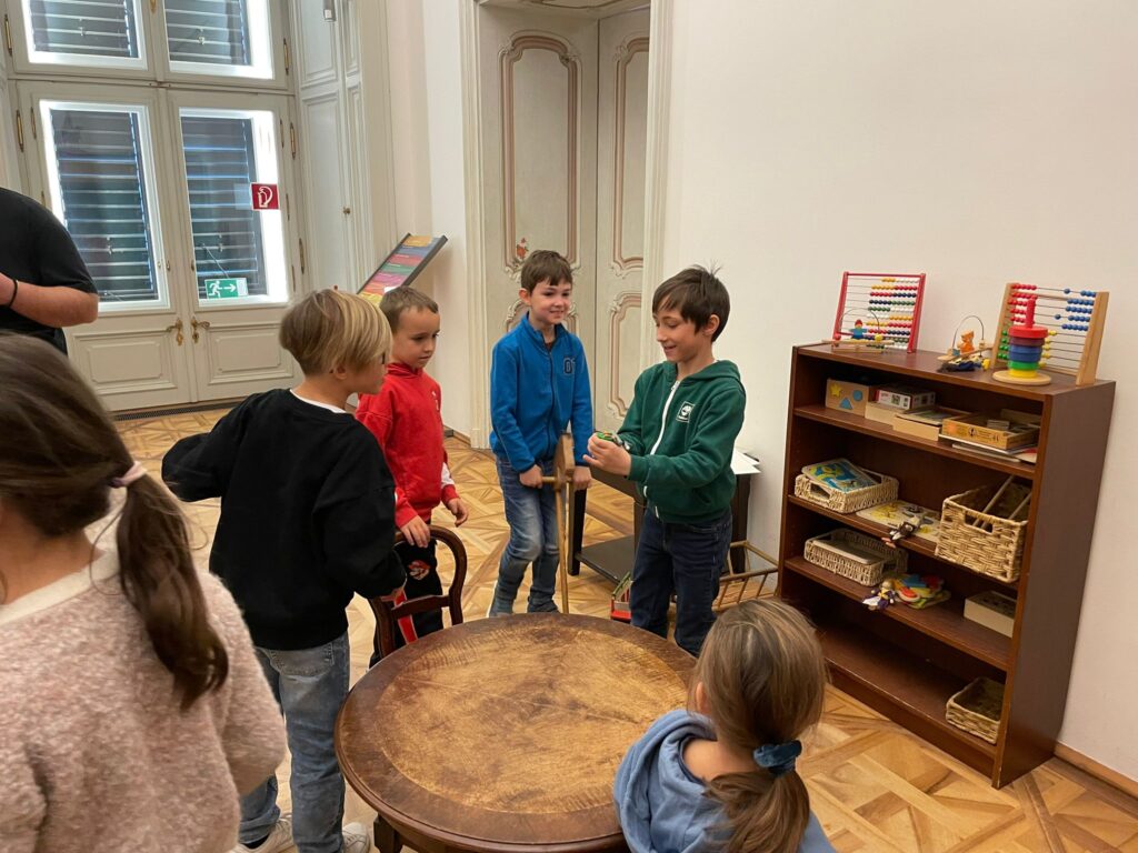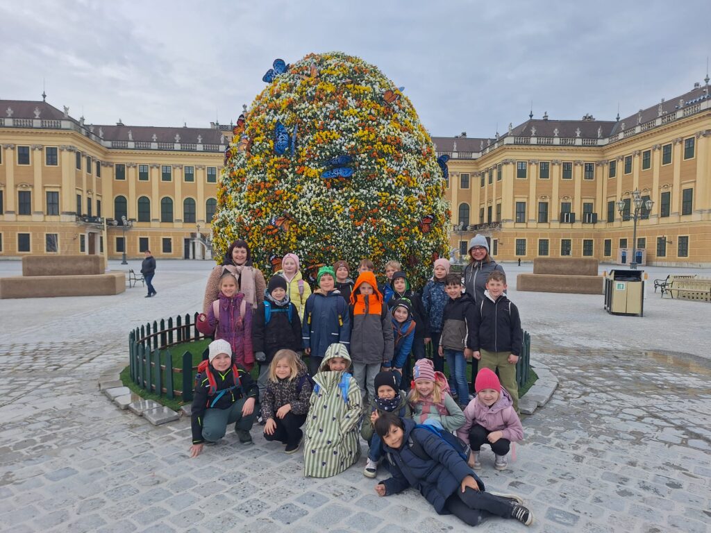 Bei der Erkundung des Gartens rund um das Schloss, entdeckten die Kinder die prachtvolle Parkanlage und erhielten einen Eindruck von der Bedeutung dieses historischen Ortes. Im Kindermuseum begaben sie sich auf die Spuren von Maria Theresia und Sissi und lernten anschaulich, wie die Menschen früher lebten.