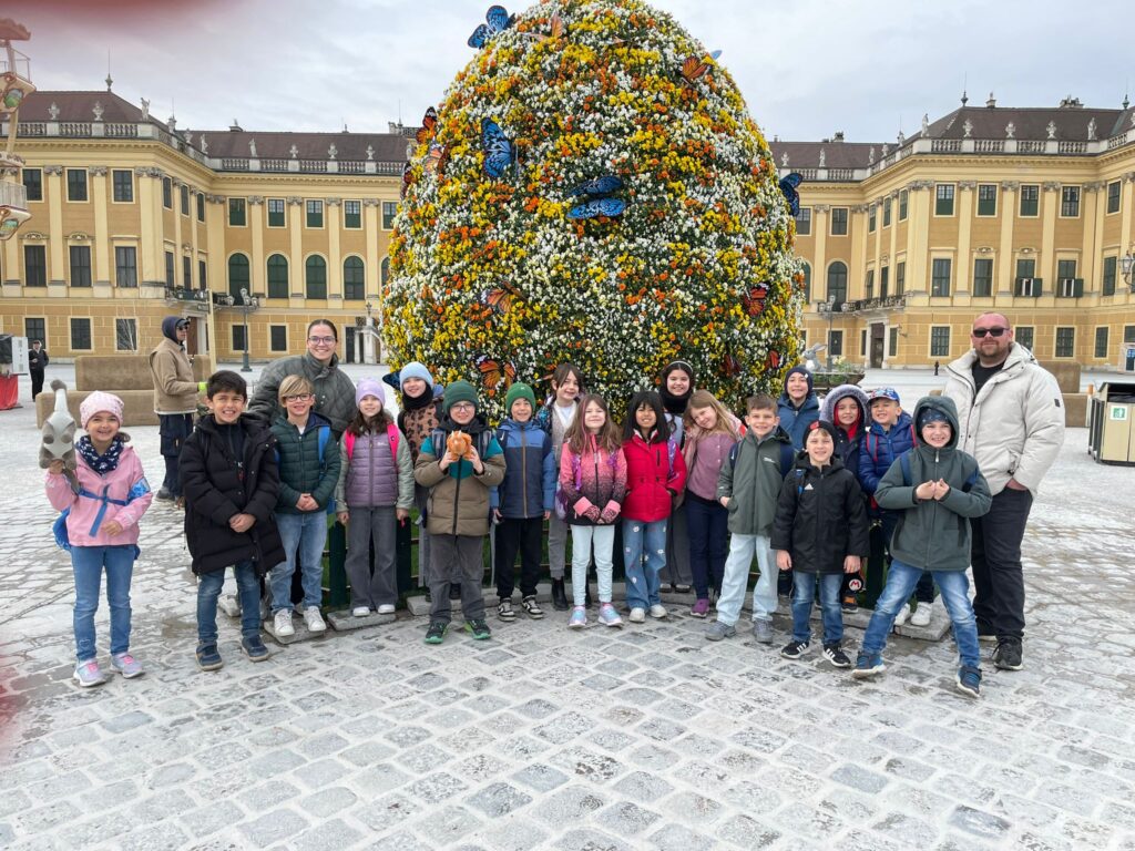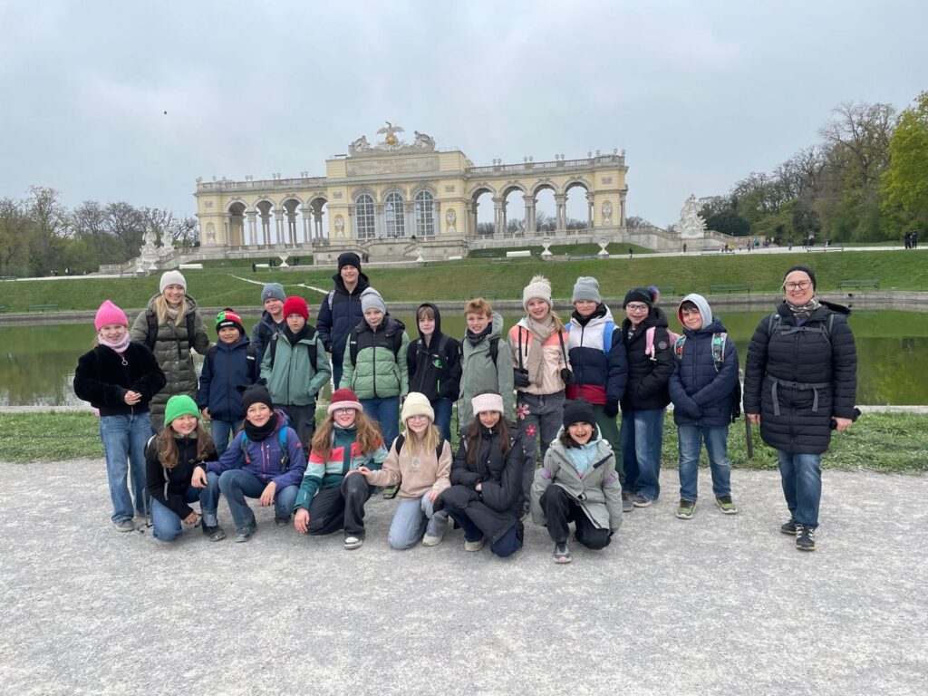 Ein besonderer Schulausflug führte die gesamte Schule nach Schönbrunn, wo die Schülerinnen und Schüler gemeinsam in die Geschichte eintauchen konnten. Bereits der Besuch bei der Gloriette bot einen beeindruckenden Ausblick über das weitläufige Areal und sorgte für erste Begeisterung.