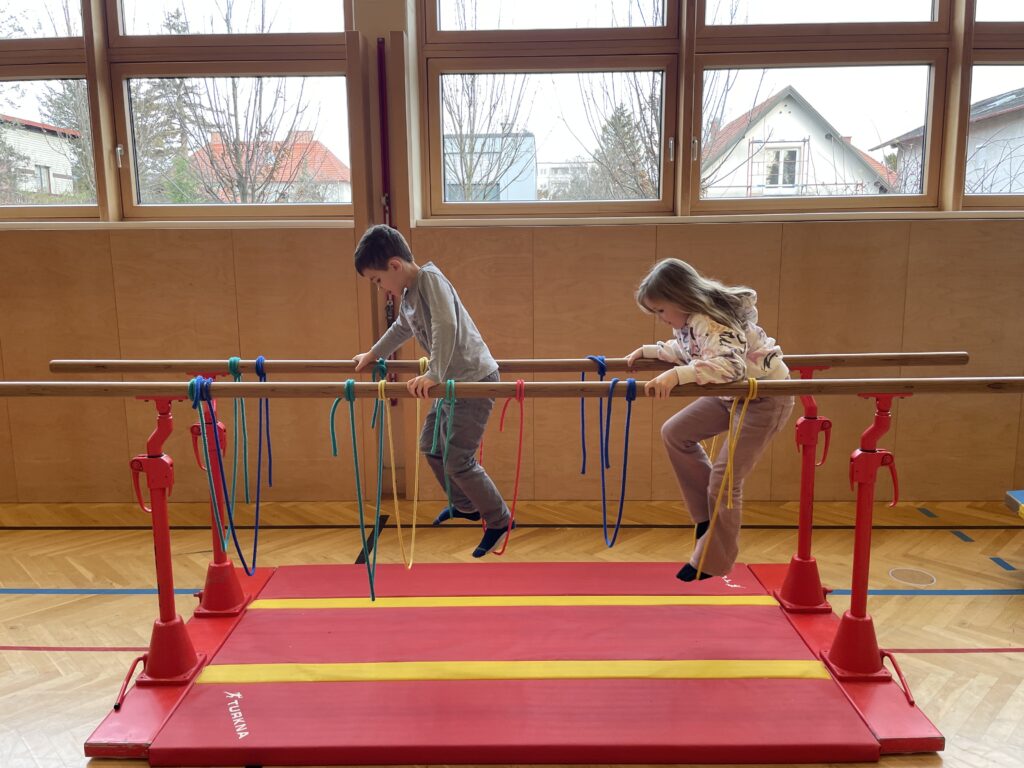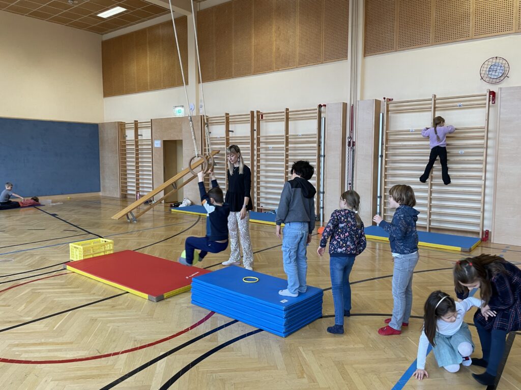 Es wurden Weihnachtskarten gebastelt, Geschichten in der Bibliothek vorgelesen und fröhliche Lieder gesungen. Im Turnsaal erwartete die Kinder ein Winterwunderland mit spannenden Bewegungsstationen und im Bewegungsraum konnten sie bei Yoga entspannen. Auch das Tanzen kam natürlich nicht zu kurz. In der Küche entstanden mit viel Fantasie liebevoll dekorierte Butterkeks-Häuser und an der iPad-Station warteten weihnachtliche Übungen.