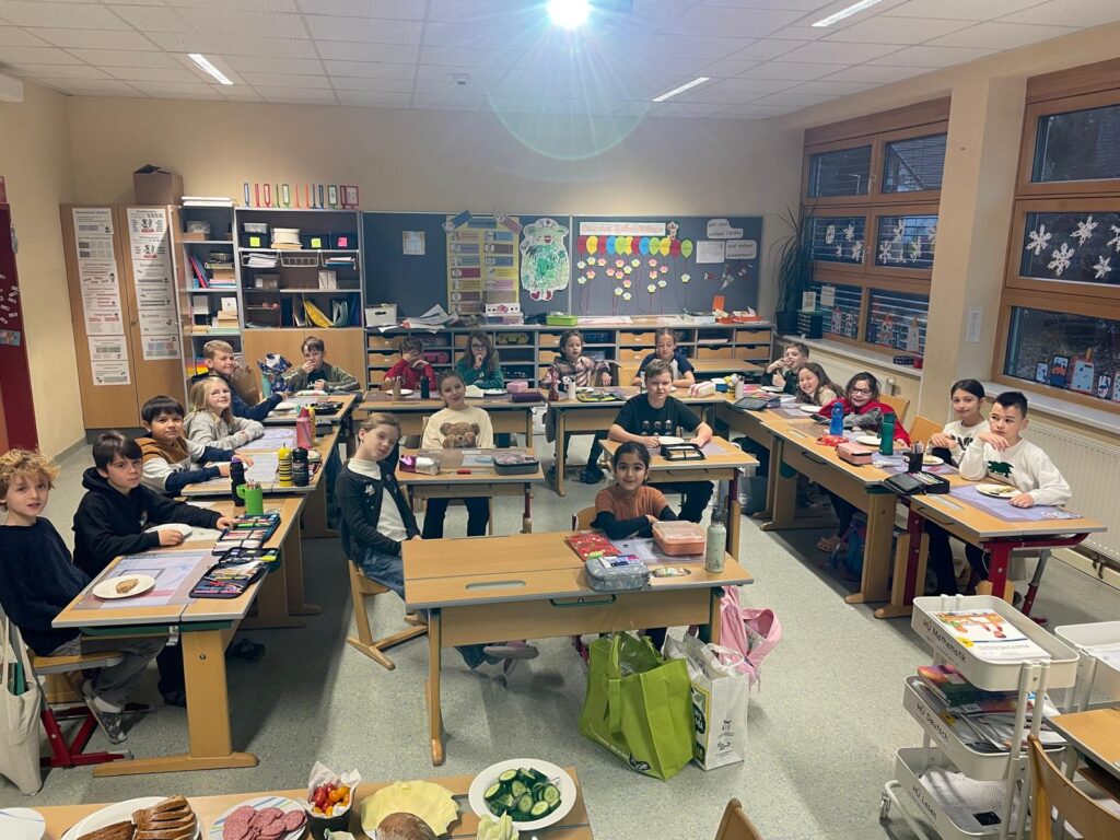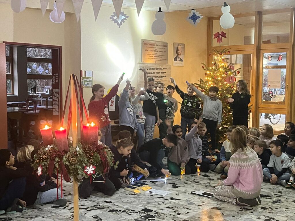In der 4b wird es festlich: Gemeinsam nähen die Kinder mit viel Geschick kleine Tannenbäume an der Nähmaschine – ein kreatives Projekt, das für Begeisterung sorgt. Bei unserer Adventsfeier singen wir das Lied „Kleiner Stern“ und genießen anschließend eine gesunde BIO‑Jause, während eine stimmungsvolle Weihnachtsgeschichte vorgelesen wird.